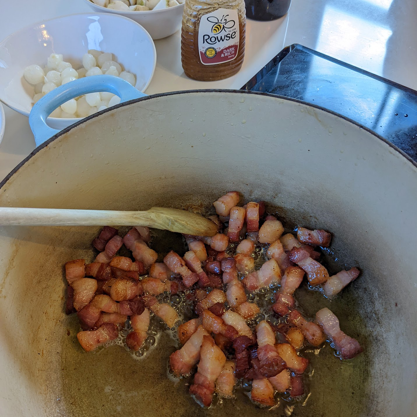 Dark & Rich Honey Chicken Thighs, Smoked Bacon & Turnips