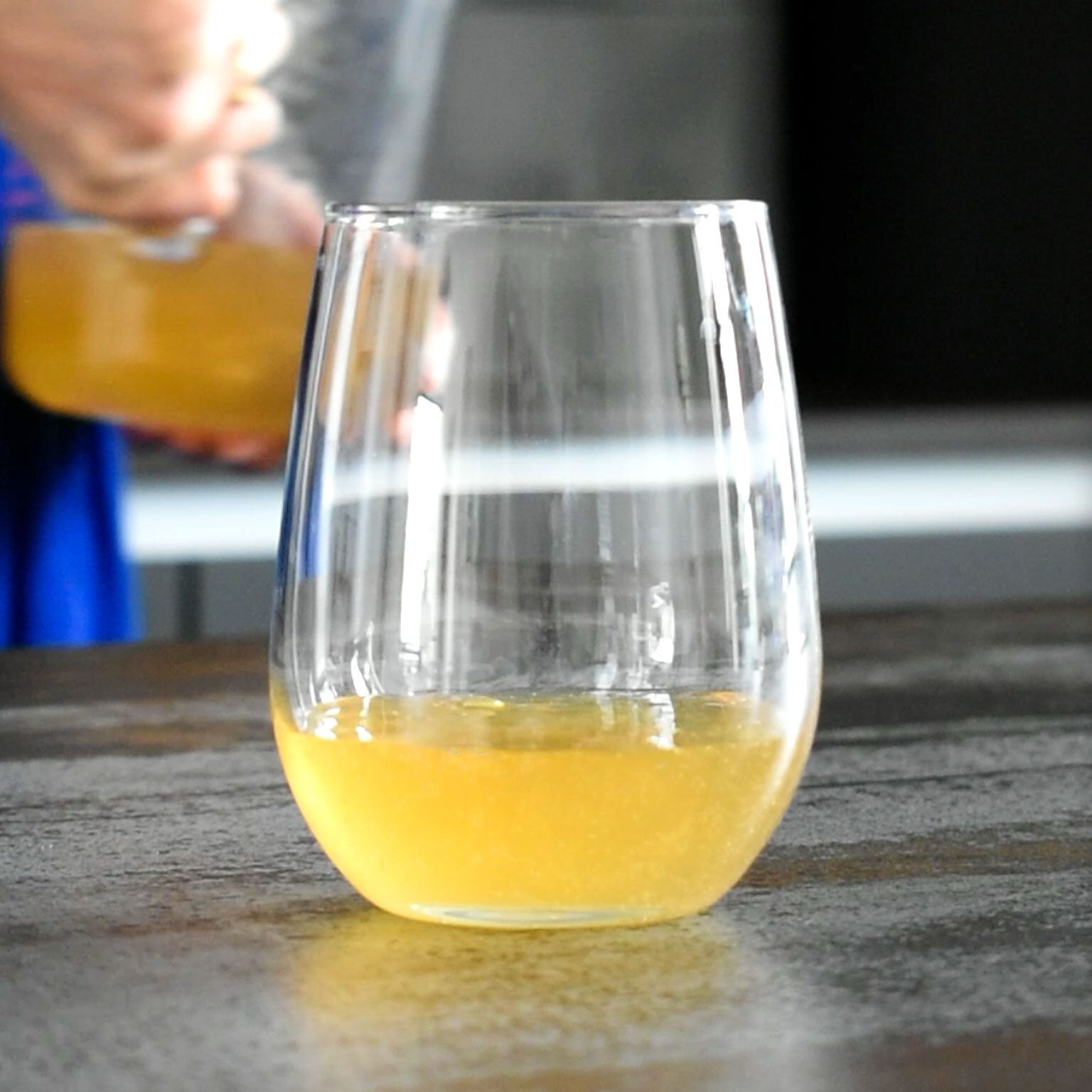 Step 6Pour ¼ cup of honey jelly into each chilled glass and allow to set in the freezer for 30 minutes.