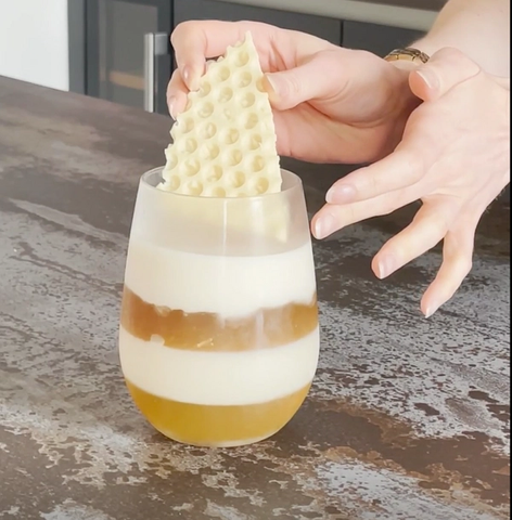 Layers of honey jelly and coconut pudding create a decadent celebration of Rowse’s British heritage and the important role of honey bees in British history. Top it off with white chocolate honeycomb and crown-shaped biscuits, and you have the perfect weekend pudding!